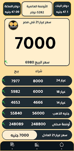 • تغطية شاملة للعيارات: يعرض أسعار جميع عيارات الذهب الشائعة (24، 21، 18)، بالإضافة إلى سعر الجنيه الذهب، لتلبية كافة احتياجات المستخدمين.